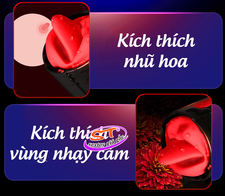 Sản phẩm là sự kết hợp giữa cốc thủ dâm có mô phỏng miệng âm đạo kết hợp 1 lưỡi mềm kích thích lên đầu dương vật khi thủ dâm.