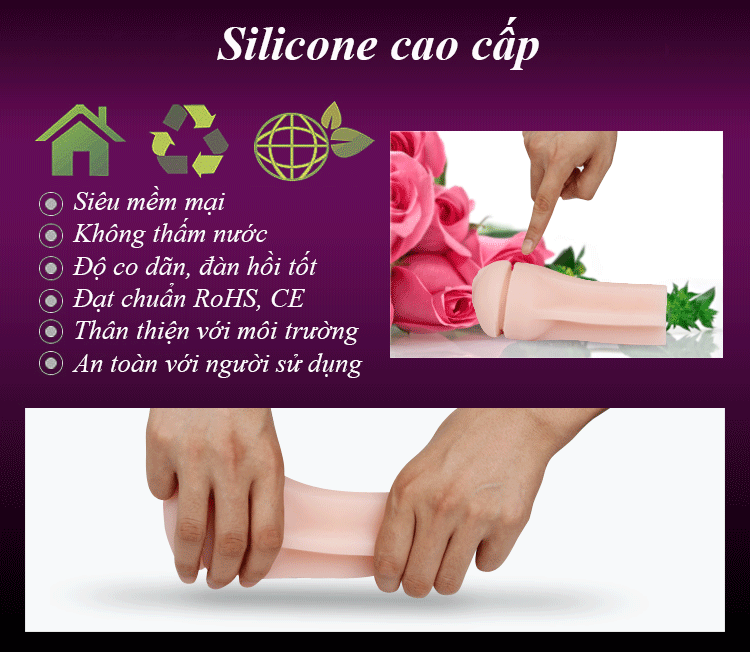 Chất liệu: nhựa ABS cao cấp, Silicone siêu mềm mại, đạt chuẩn CE-EU, tuyệt đối an toàn với người sử dụng