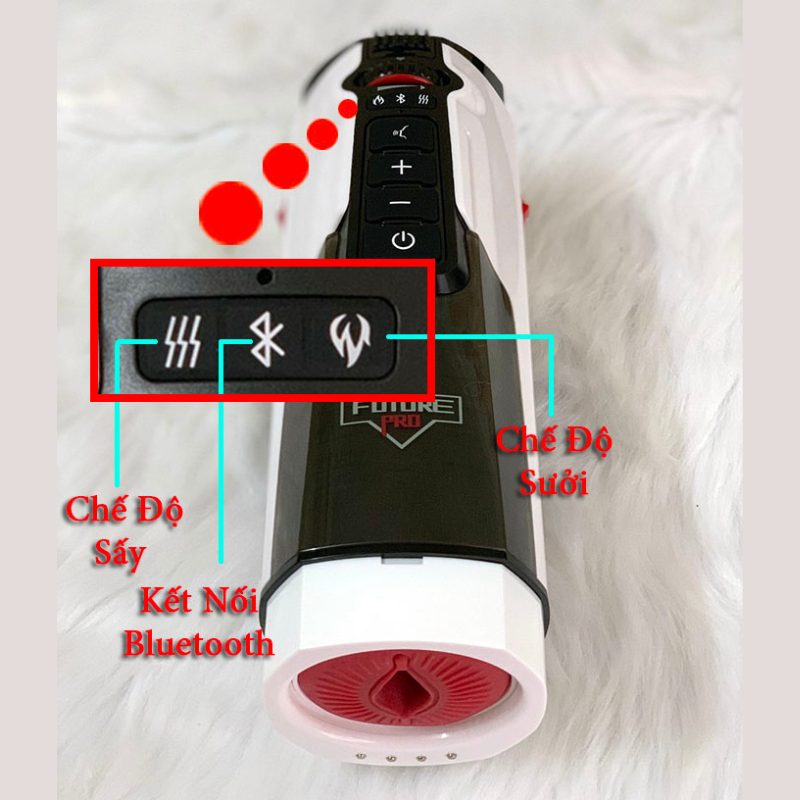 - Chức năng: Tự động thụt, co bóp như thật, kèm theo chế độ sưởi ấm lên tới 40 độ, cùng chế độ sấy khô phần âm đạo, kết nối bluetooh, tạo hương thơm.