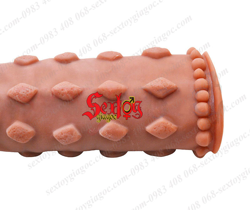 Phần đầu được mô phỏng giống với đầu khấc dương vật tạo cảm giác chân thực, sinh động, không làm mất đi vẻ hấp dẫn, quyến rũ của cậu nhỏ thật. Phần thân là rất nhiều những hạt bi nổi bao quanh vừa giúp độn to dương vật, vừa làm tăng khả năng kích thích lên thành âm đạo phụ nữ.