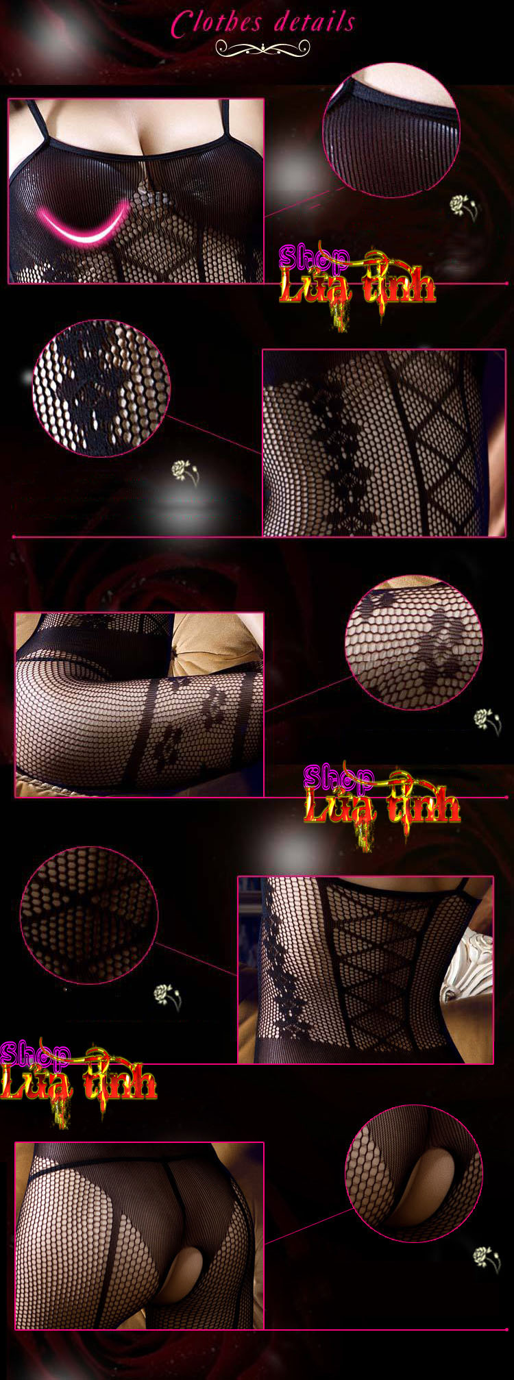 Đồ ngủ sexy áo dây + quần tất lưới màu đen - NY01A được làm từ chất liệu ren cao cấp dạng lưới có độ co giãn, đàn hồi cao, tạo độ thoáng, mát và thoải mái cho người mặc.