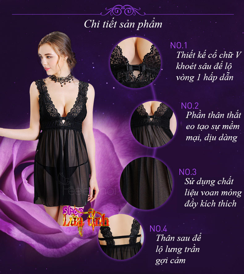 Đồ ngủ sexy nữ siêu mỏng hở ngực táo bạo - NY008 sử dụng chất liệu voan siêu mỏng khiến thân hình của nàng càng trở lên hấp dẫn hơn, kích thích hưng phấn tình dục của chàng.