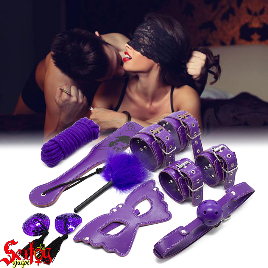 Dụng cụ bạo dâm bộ đồ chơi làm mới cuộc yêu - BD007 gồm 4 vòng khóa chân + tay, 1 mặt nạ che mắt, 1 bóng khóa miệng, 1 dây trói, 1 thanh phết mông, 2 miếng dán đầu ti, 1 gậy lông nhỏ đeo hậu môn.