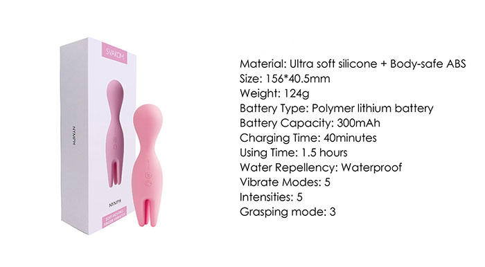 Massage điểm G 2 Đầu Cao Cấp Svakom NYMPH được thiết kế khá nhỏ gọn nhưng động cơ hoạt động lại vô cùng mạnh mẽ. Bảng điều khiển liền thân dễ sử dụng với 1 đầu tròn 5 chế độ và đầu hoa tuy líp là 3 chế độ khác nhau. Sản phẩm được sản xuất với lớp silicone mềm bao quanh phần động cơ cho cảm giác giống da thịt của con người khiến cho người dùng có cảm giác thân thiện và thoải mái. Động cơ bên trong của cả 2 đầu được lập trình để bắt chước những động tác làm tình tuyệt vời dành cho "cô bé" ngực , tai và nhiều nơi nhạy cảm của chị em