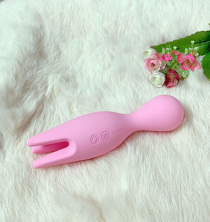 Massage điểm G 2 Đầu Cao Cấp Svakom NYMPH là mẫu sản phẩm hoàn toàn mới của nhà sản xuất , được thiết kế 1 đầu tròn với 5 chế độ rung khác nhau, tạo cảm giác mới mẻ cho bạn khi sử dụng, đầu còn lại của sản phẩm được mô phỏng theo hình bông hoa tuy lip với 3 chế độ rung kích thích lên những phần nhạy cảm nhất trên cơ thể.
