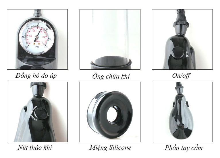 Máy tập to dương vật tự động Gauge Pump Baile - DC013 gồm 1 ống chứa khí được nối với bộ phận bơm/hút thông qua 1 ống dẫn để khi cho dương vật vào thì nó sẽ tạo thành 1 hệ thống khép kín, từ đó lợi dụng áp lực không khí bên trong để kéo dãn và làm nở các cơ trên dương vật.