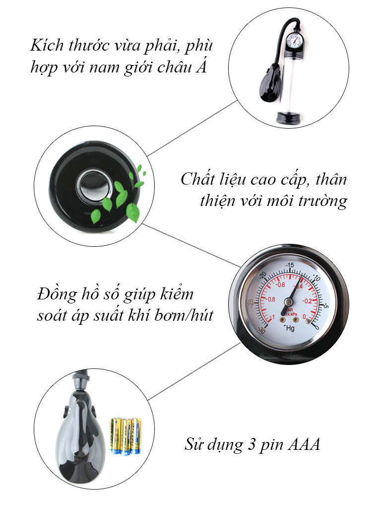 Sản phẩm Máy tập to dương vật tự động Gauge Pump Baile - DC013 hoạt động dựa trên nguyên tắc vật lý, sử dụng áp lực khí tác động lên dương vật, làm giãn nở các cơ, mô trên dương vật, cho máu lưu thông đến dương vật nhiều hơn, nhờ đó mà cậu nhỏ to hơn, dài hơn và khỏe mạnh hơn, duy trì độ cương cứng lâu hơn khi quan hệ.