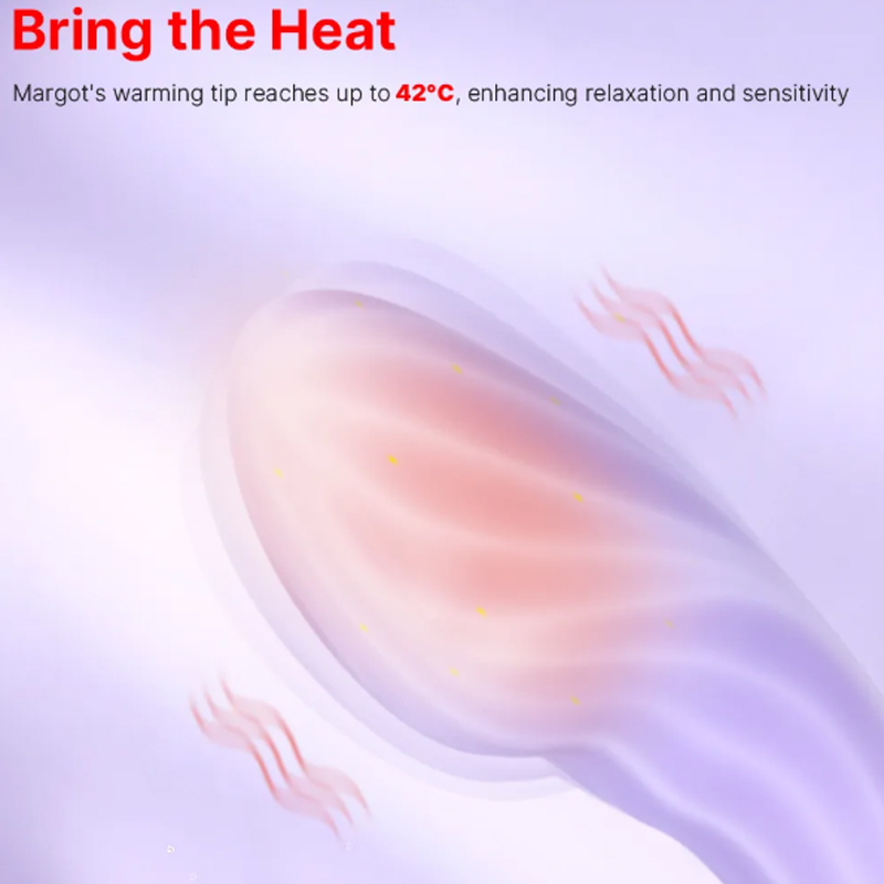 Kích hoạt chức năng làm ấm của Margot để nhẹ nhàng làm nóng đầu rung lên 42°C, tăng cường độ nhạy cảm và giúp bạn dễ dàng thư giãn, thả lỏng và hoàn toàn đắm chìm vào khoảnh khắc.