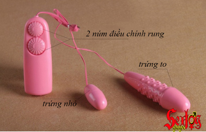 Trứng rung đôi-màu hồng ngọt ngào - DC04C có hai trứng, trứng nhỏ có thể đưa lọt vào bên trong âm đạo của nàng, điều này sẽ làm tăng kích thích khoái cảm của nàng. Trứng còn lại to hơn và giống hình thù như một dương vật giả, có đầu khấc to, ngoài ra xung quanh dương vật giả còn có nhiều gai giúp cọ sát các điểm nhạy cảm của chị em khi tự sướng.