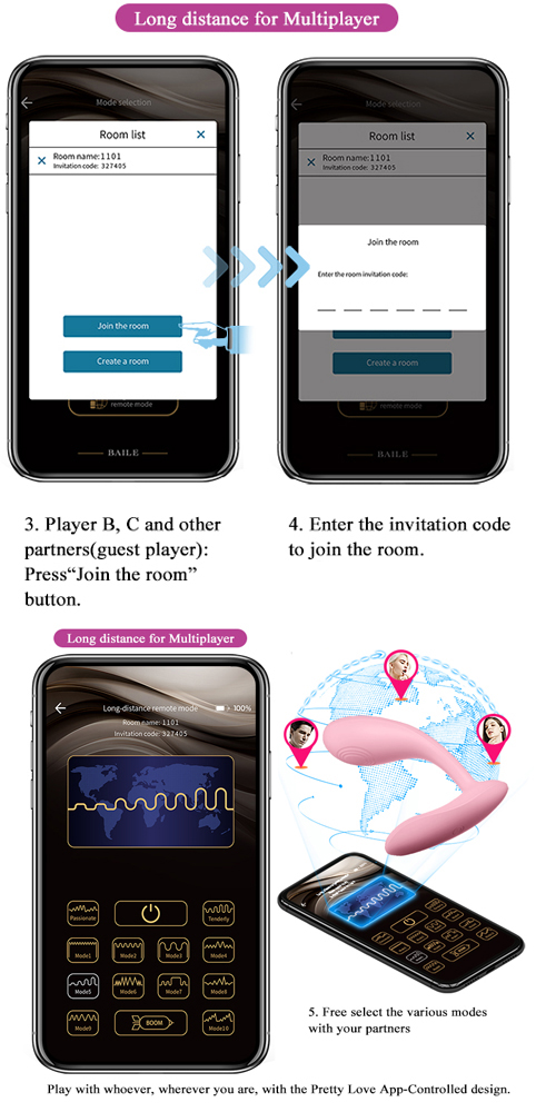 Chức năng : 12 chế độ rung, có thể điều khiển trực tiếp thông qua Ứng dụng Pretty Love với 3 chức năng chính: Chế độ tự động, Chế độ đắm chìm và Chế độ âm nhạc, và các chức năng này có thể được điều khiển mọi lúc, mọi nơi trên thế giới (Điều khiển khoảng cách xa).