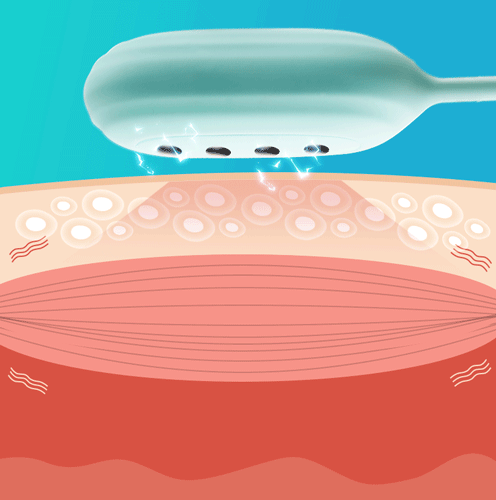 -Nhấn giữ nút hình gợn sóng để khởi động chức năng xung điện, nhấn 1 lần để chuyển đổi 5 mức xung điện.