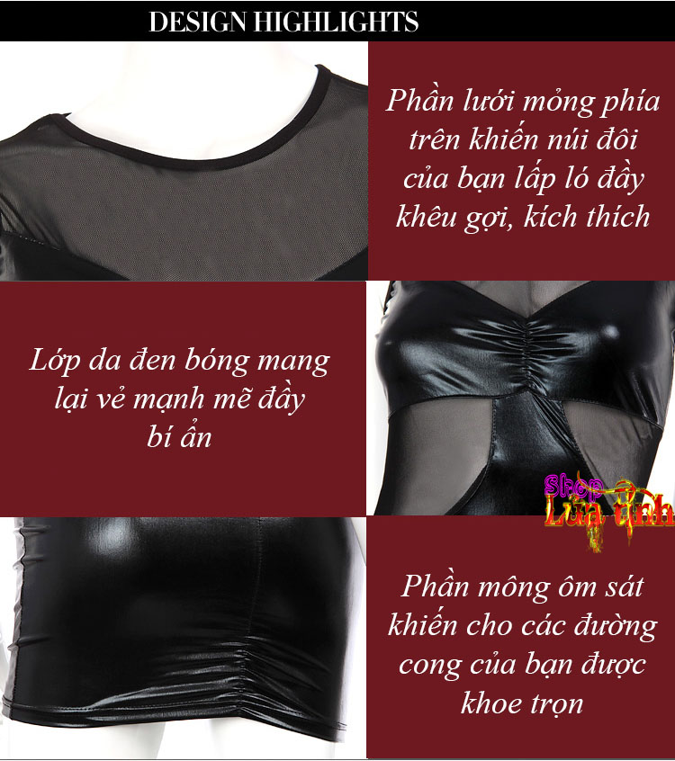 Váy ngắn bó sát bốc lửa, cá tính - NY02A là sự kết hợp hoàn hảo giữa chất liệu da đen bóng cùng với lưới đen mỏng manh, xuyên thấu tạo lên bộ váy vô cùng phong cách, cá tính.